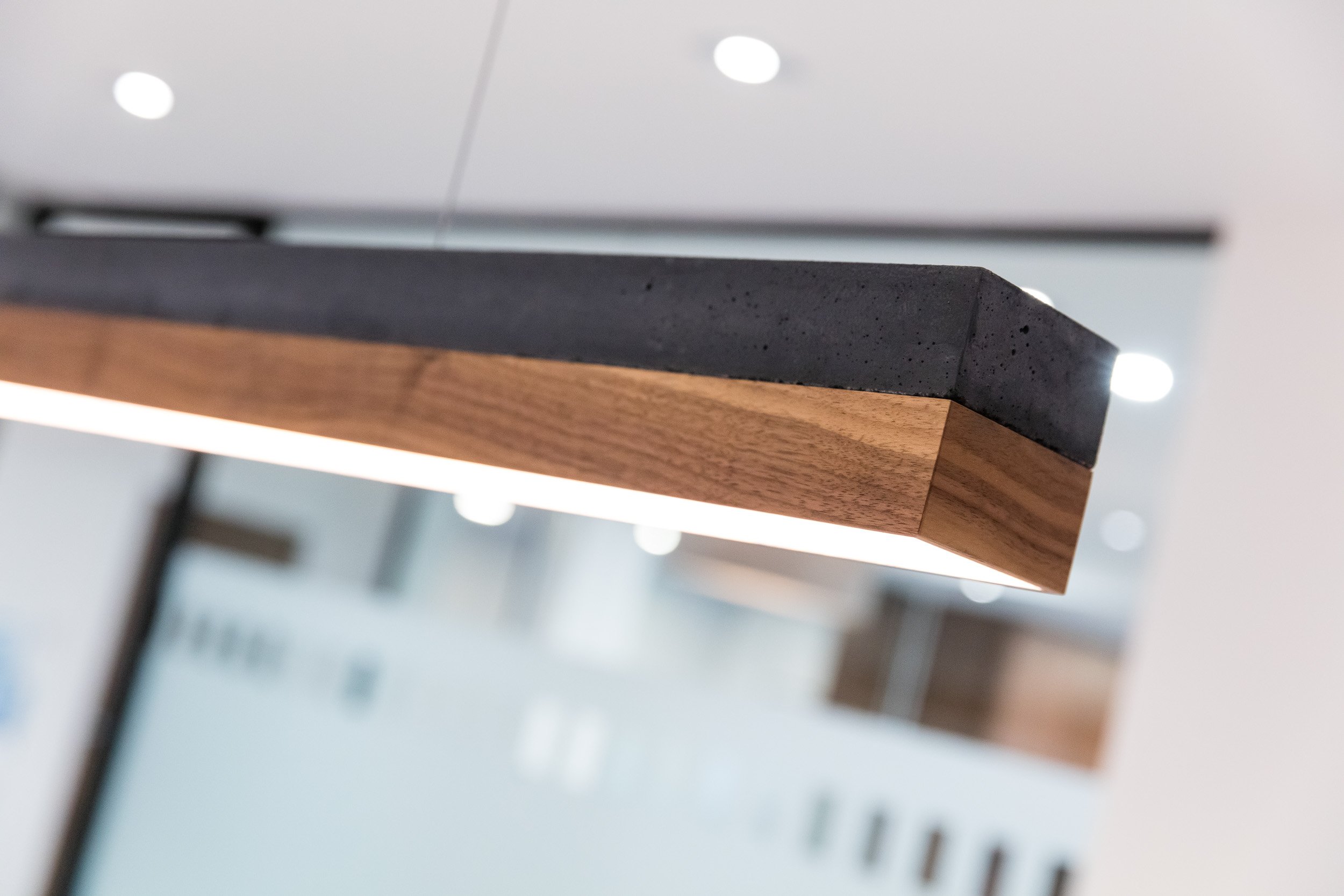 Feature Linear lighting in walnut and concrete compliments the finish of the interior.